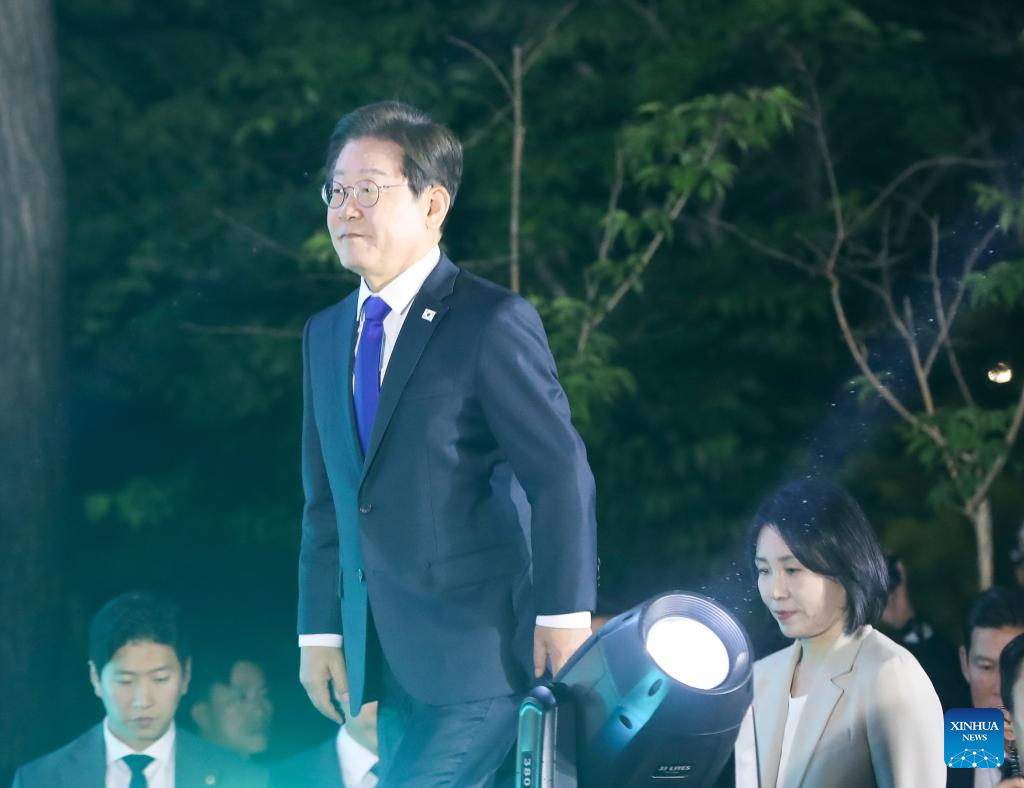 SEOUL, June 4 (Xinhua) -- Lee Jae-myung of South Korea's majority liberal Democratic Party was elected president, the ongoing vote count by the National Election Commission showed on Wednesday.