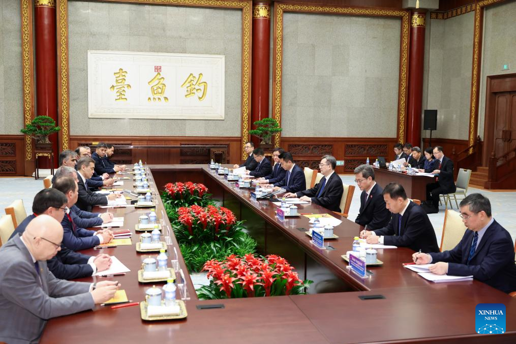 Chinese Vice Premier Ding Xuexiang, also a member of the Standing Committee of the Political Bureau of the Communist Party of China Central Committee, meets with foreign representatives attending a meeting of the Shanghai Cooperation Organization (SCO) member states' finance ministers and central bank chiefs in Beijing, capital of China, June 3, 2025. (Xinhua/Liu Bin)