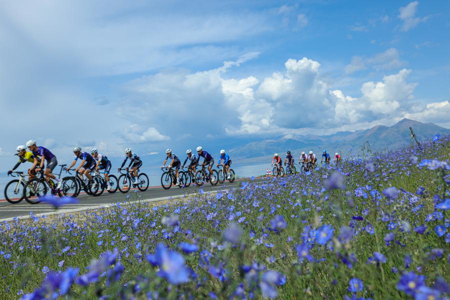 Cyclists in the fifth stage of the Tour of Sayram Lake in Bortala Mongolian Autonomous Prefecture, northwest China's Xinjiang Uygur Autonomous Region, June 4, 2025. (Handout via Xinhua)
