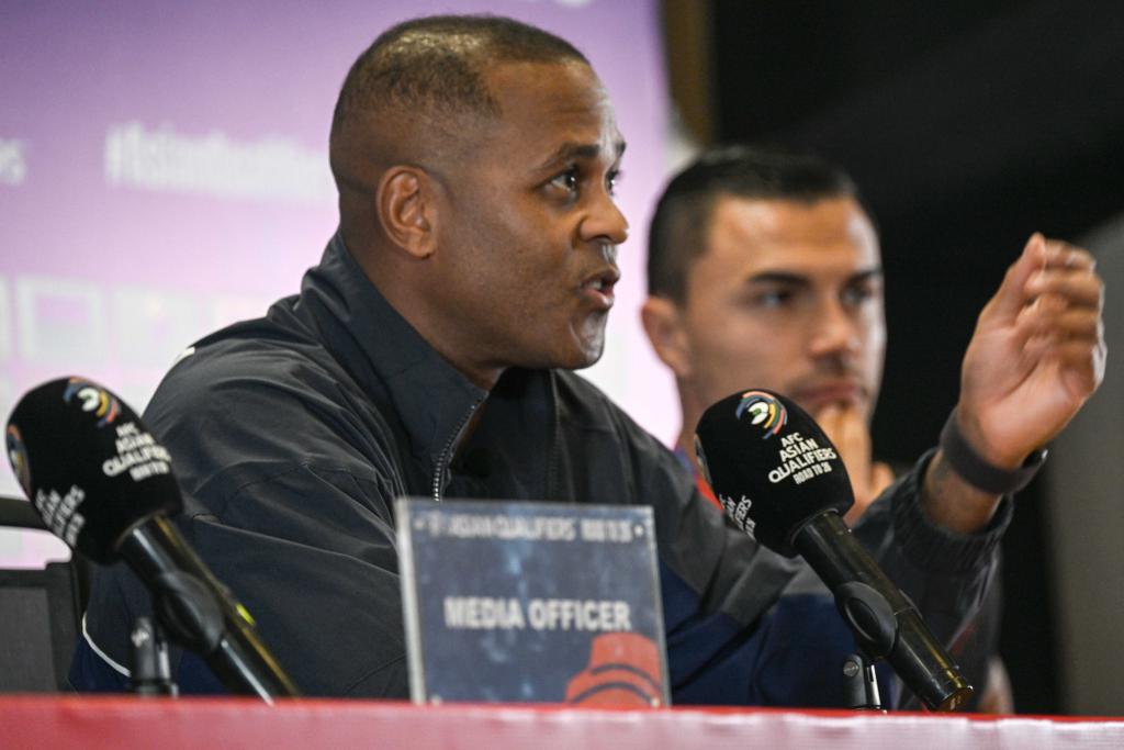 Indonesia's head coach Patrick Kluivert (Front) speaks during a press conference in Jakarta, Indonesia, June 4, 2025, one day ahead of the 2026 FIFA World Cup Asian Qualifiers Group C match between China and Indonesia. (Xinhua/Agung Kuncahya B.)