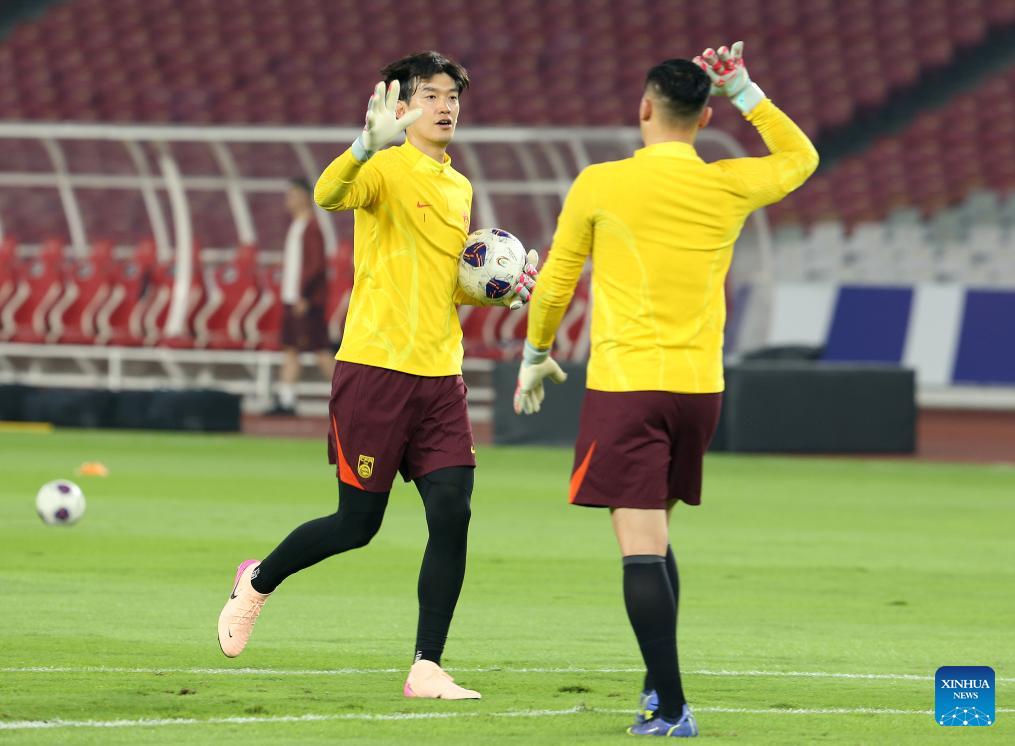 Goalkeeper Wang Dalei of China attends a training session in Jakarta, Indonesia, June 4, 2025, one day ahead of the 2026 FIFA World Cup Asian Qualifiers Group C match between China and Indonesia. (Xinhua/Cen Yunpeng)