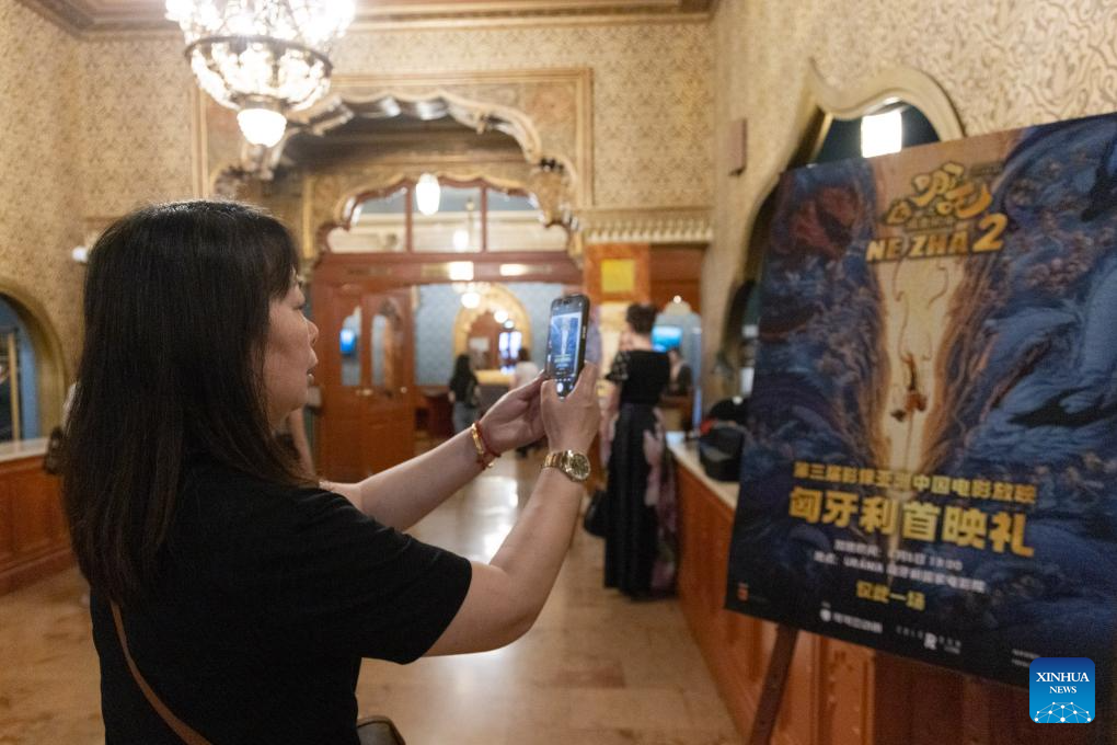 People attend the premiere of Chinese animated blockbuster "Ne Zha 2" in Budapest, Hungary on June 5, 2025. (Photo by Attila Volgyi/Xinhua)