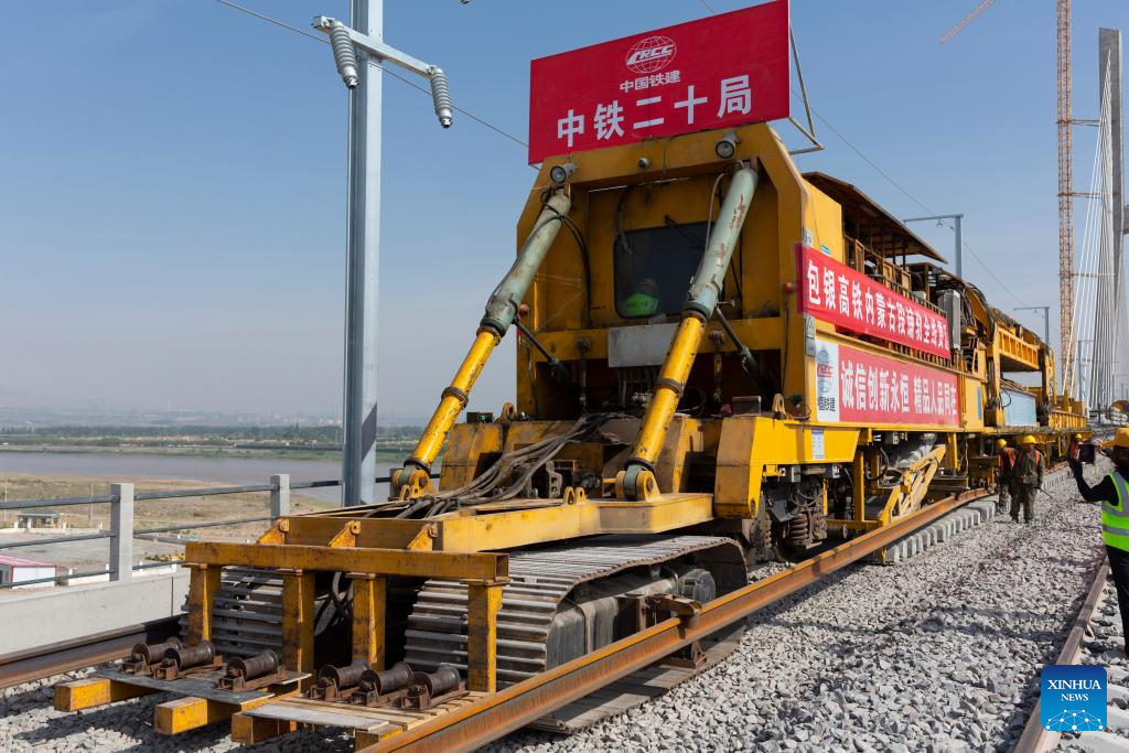 With the precise placement of the last set of 500-meter-long steel rails, the track-laying phase of the Inner Mongolia section of the Baotou-Yinchuan high-speed railway project was successfully completed on Friday.