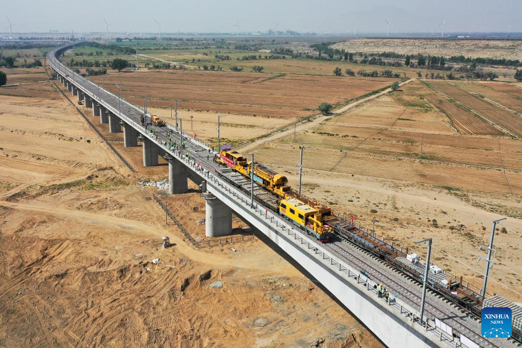 With a designed speed of 250 km per hour, the Baotou-Yinchuan high-speed railway is a crucial link along the Beijing-Lanzhou horizontal trunk line in the nation-wide high-speed railway network. (Xinhua/Gao Wei)