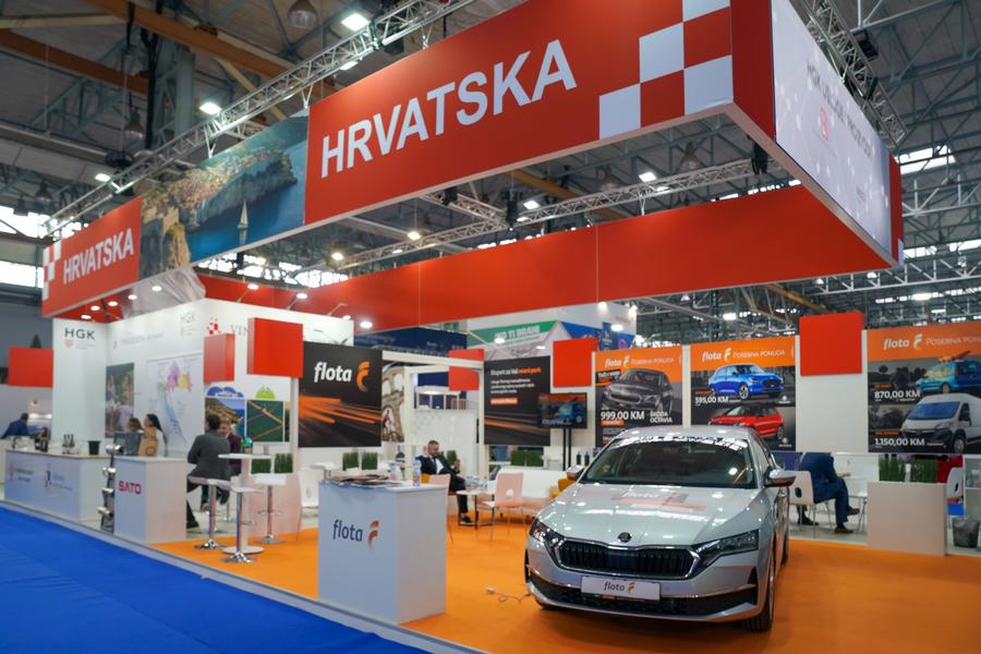 This photo taken on April 8, 2025 shows the exhibiting area of Croatia during the 26th International Economy Fair Mostar in Mostar, Bosnia and Herzegovina (BiH). (Photo by Jasmin Brutus/Xinhua)