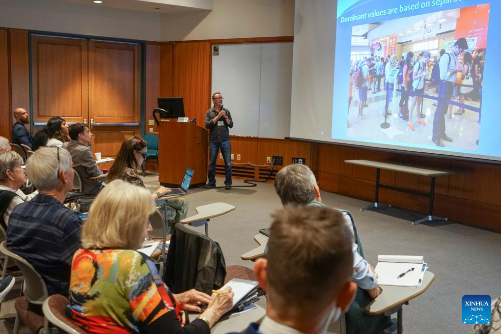 Scholars attend the 18th International Forum on Ecological Civilization in Claremont, the United States, on June 5, 2025. The 18th International Forum on Ecological Civilization kicked off Thursday at Pomona College in the U.S. city of Claremont, as ecological experts around the world warned that mankind needs to take more drastic actions to preserve the ecological environment before it's too late. (Photo by Zeng Hui/Xinhua)