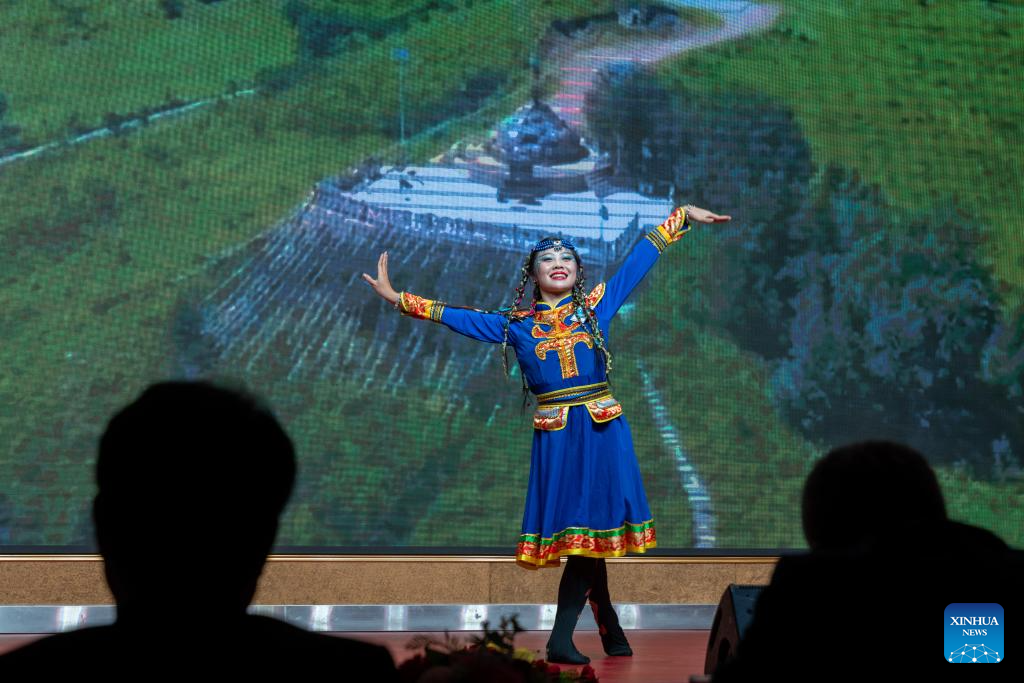 A contestant performs during the Lao Regional Final of the 24th "Chinese Bridge" Chinese Proficiency Competition for Foreign College Students in Vientiane, Laos, June 6, 2025. (Photo by Kaikeo Saiyasane/Xinhua)