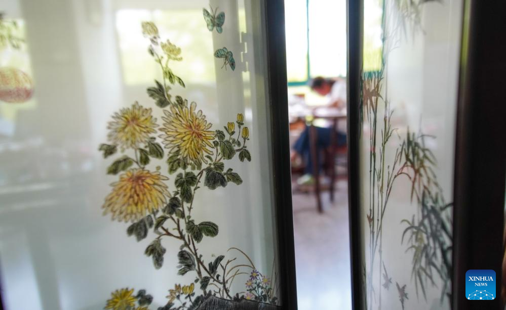 Chen Boyu works on a hair embroidery artwork at the Jiali hair embroidery factory in Dongtai City, Yancheng of east China's Jiangsu Province, June 6, 2025. (Xinhua/Xin Yuewei)