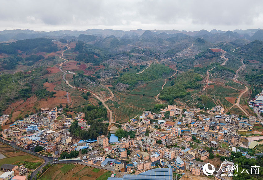 | Photo shows an aerial view of Zhuangzitian village group Wenshan city, southwest China's Yunnan Province. (People's Daily Online/Fu Hao) |