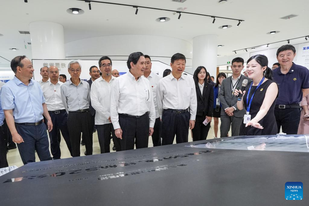 Ma Ying-jeou, former chairman of the Chinese Kuomintang party, and members of a delegation of Taiwan youth visit the exhibition hall of Chinese electric vehicle (EV) battery maker Contemporary Amperex Technology (CATL) in Ningde, southeast China's Fujian Province, June 17, 2025. Ma led a delegation of Taiwan youth on a visit to Ningde on Tuesday. (Xinhua/Chen Yehua)