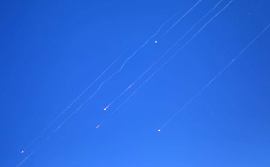 Missile traces are seen from the city of Hebron in the southern West Bank, during Iran's missile attack against Israel, on June 17, 2025. (Photo by Mamoun Wazwaz/Xinhua)