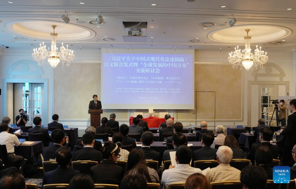 TOKYO, June 20 (Xinhua) -- The launch ceremony for the Japanese version of a compilation of excerpts from discourses on Chinese modernization by Chinese President Xi Jinping and a seminar on Chinese solutions to global development has been held in Tokyo, attracting more than 120 guests from Chinese and Japanese government bodies, thinktanks and media.