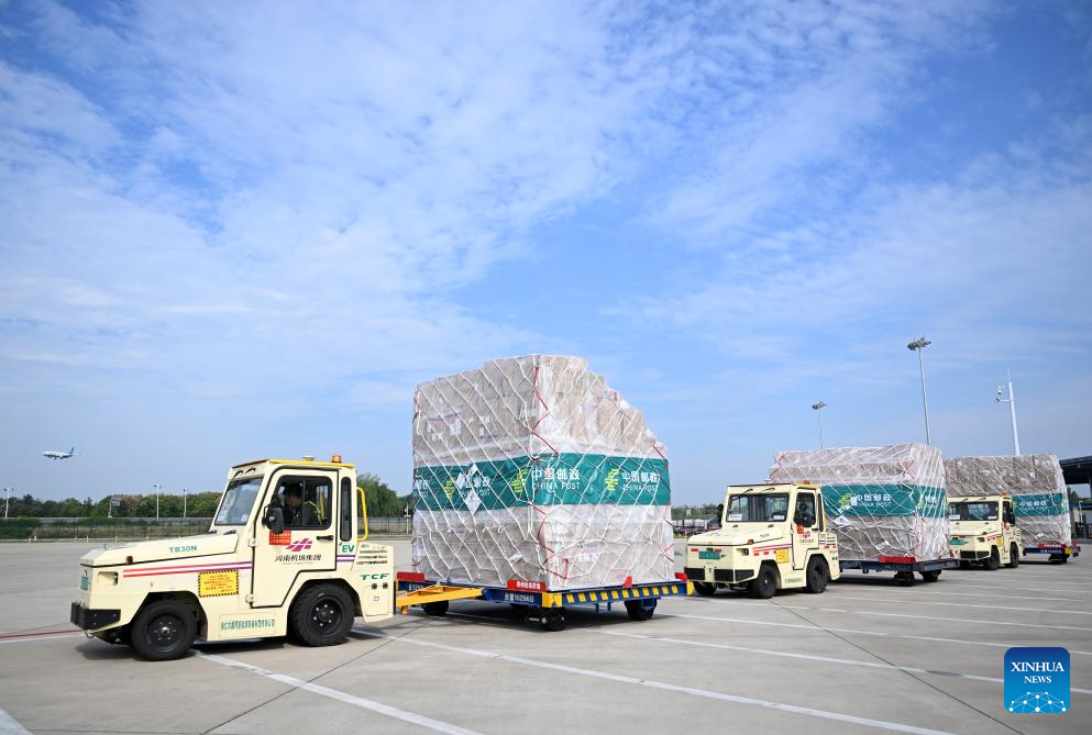 China Postal Airlines officially launched the Zhengzhou-Luxemburg international cargo route on Monday, with an initial weekly schedule. The flight frequency will be increased based on market demand, further strengthening the Zhengzhou-Luxembourg "Air Silk Road" as a thriving multi-industry corridor. (Xinhua/Li Jianan)