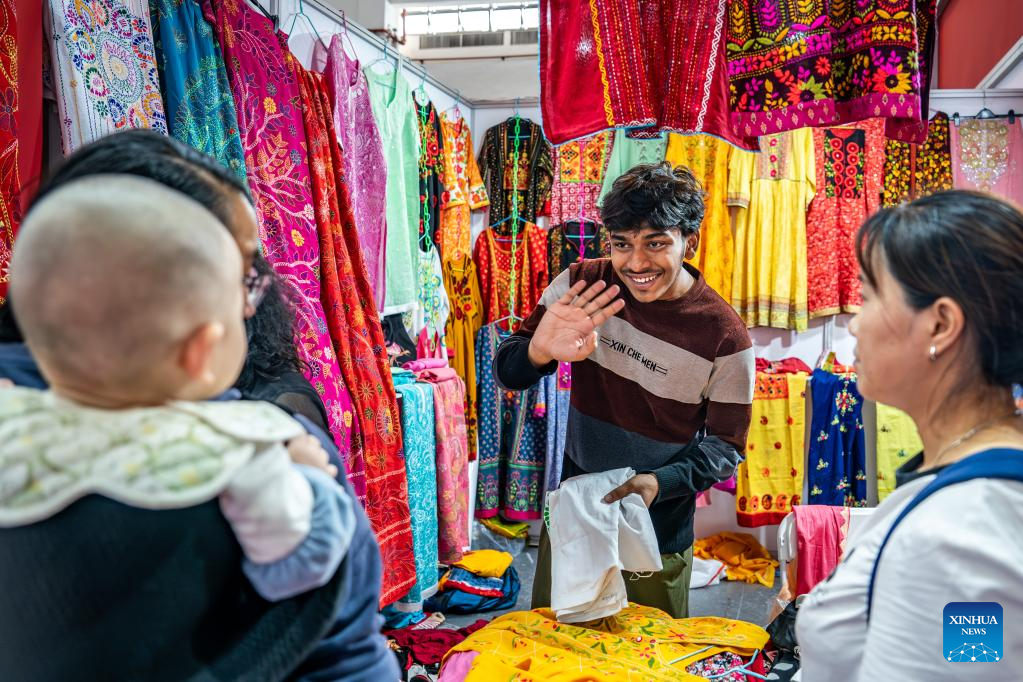 Visitors select Afghan products during the 9th China-South Asia Expo in Kunming, southwest China's Yunnan Province, June 24, 2025. The 9th China-South Asia Expo came to an end on Tuesday. A total of 153 agreements have been signed as of 12: 00 on June 24, with the total value of foreign trade contracts reaching 8.479 billion yuan (about 1.18 billion U.S. dollars). (Xinhua/Hu Chao)