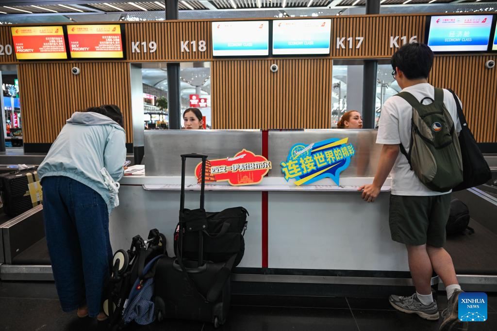 Passengers check in at the China Eastern Airlines counters to board the first direct flight from Istanbul to Xi'an at Istanbul Airport in Türkiye, on June 24, 2025. A China Eastern Airlines flight carrying over 200 passengers touched down at Istanbul Airport at around 7 a.m. local time (0400 GMT) on Tuesday, marking the launch of the airline's new direct route between Xi'an in southwestern China and Trkiye's Istanbul. (Xinhua/Liu Lei)