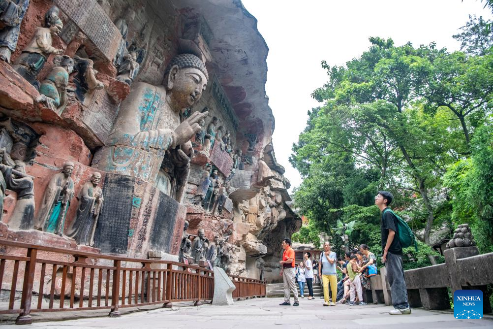 People visit the Dazu Rock Carvings scenic spot in southwest China's Chongqing Municipality, June 24, 2025. Dazu Rock Carvings, a UNESCO World Heritage Site in southwest China's Chongqing Municipality, is being injected with new vigor as various digital technologies are used for its protection and utilization.