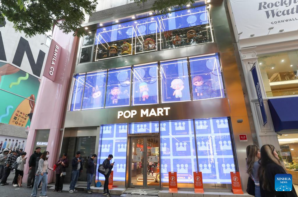 Customers line up in front of a POP MART store in Seoul, South Korea, on May 20, 2025. (Xinhua/Yao Qilin)