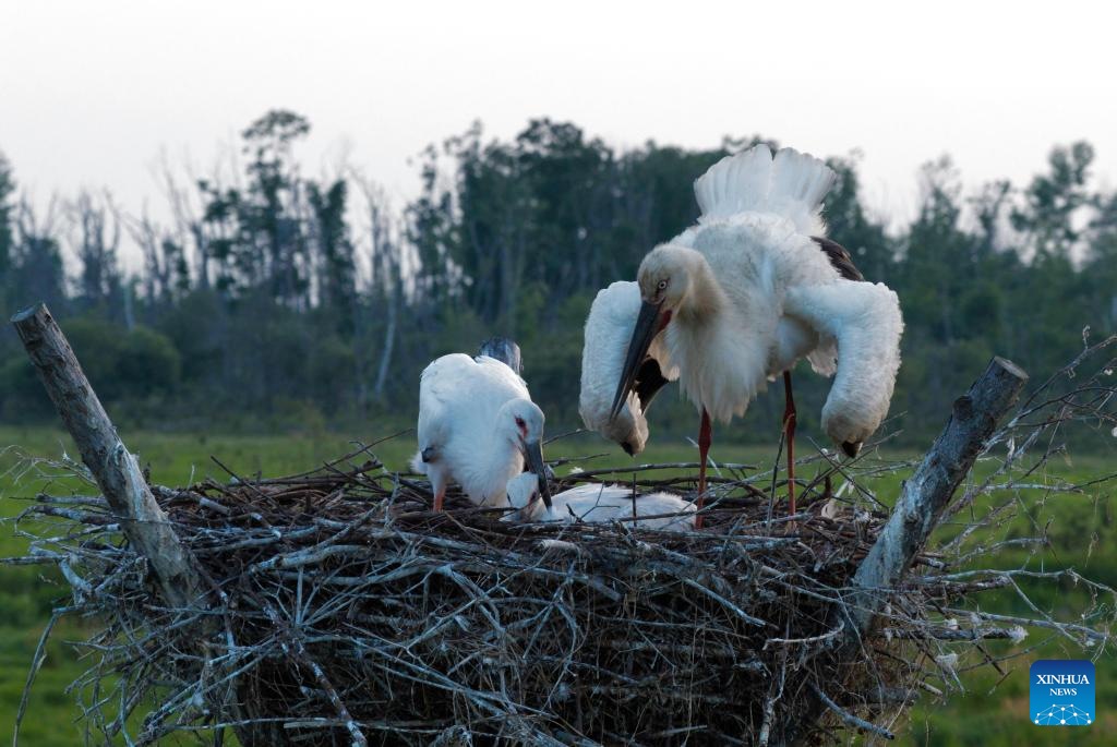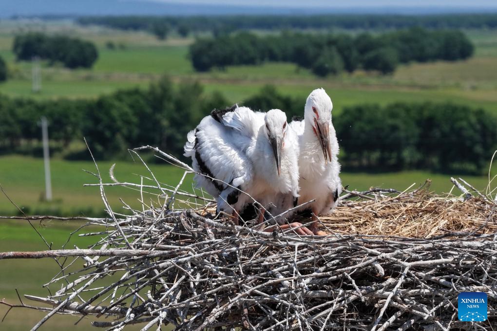 Breeding season of oriental white storks coming to end in NE China as summer progresses