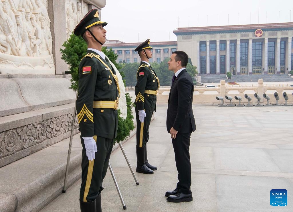Ecuadorian president lays wreath at Monument to People's Heroes on Tian'anmen Square