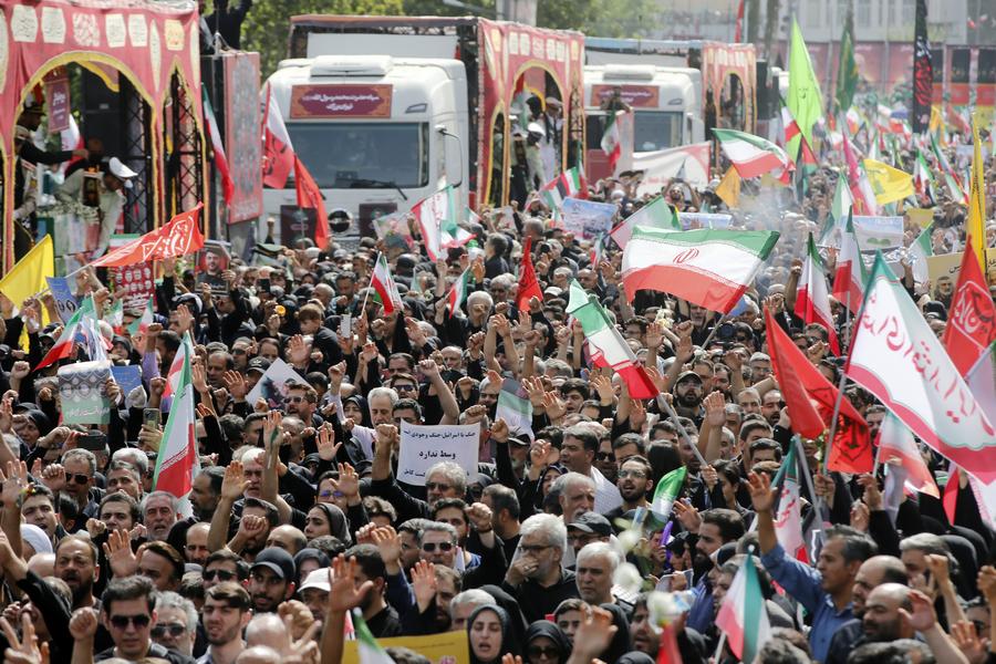 A state funeral for the military commanders and nuclear scientists killed during a 12-day conflict with Israel is held in Tehran, Iran, on June 28, 2025. (Xinhua)