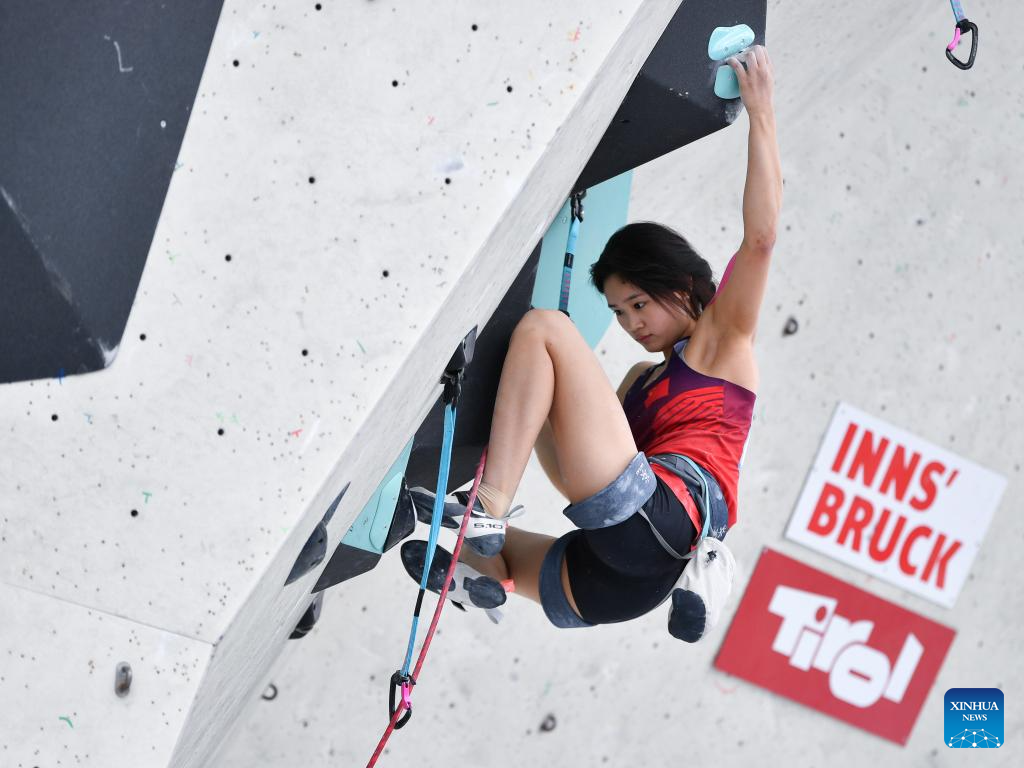 Wei Yali of China competes during the women's lead qualification at the International Federation of Sport Climbing (IFSC) World Cup in Innsbruck, Austria, June 28, 2025. (Xinhua/Lian Yi)