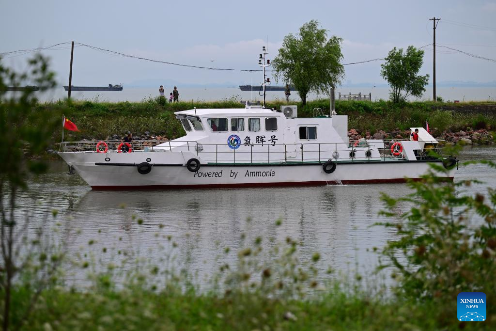 HEFEI, June 28 (Xinhua) -- The world's first pure ammonia-powered demonstration vessel, the "Anhui," successfully completed its maiden voyage in Hefei, east China's Anhui Province, marking a major step forward for green shipping.