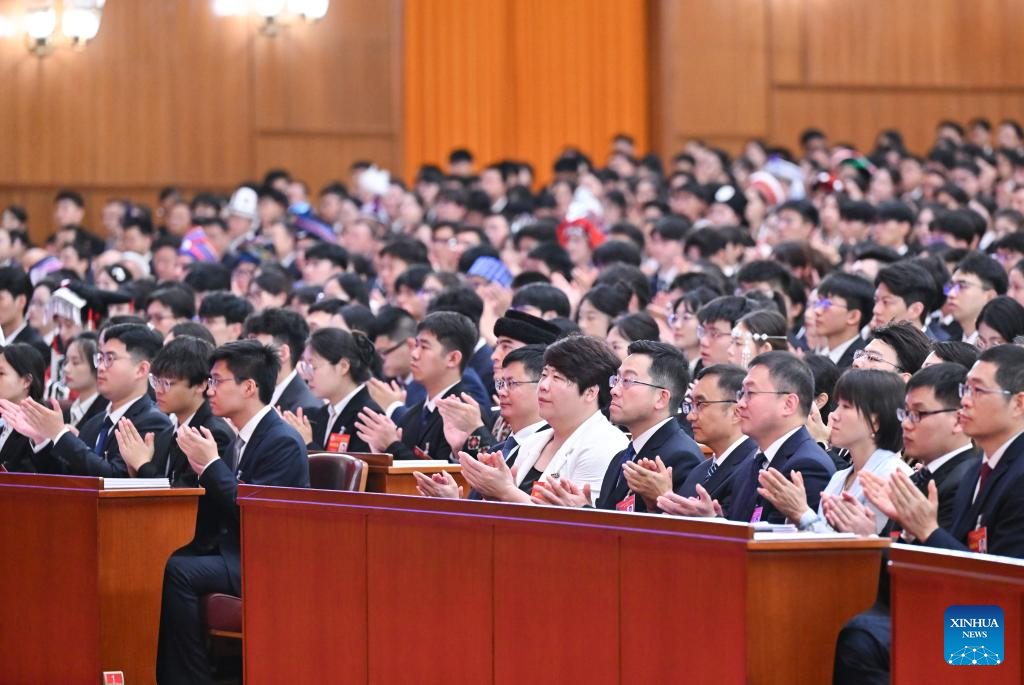 A session of the All-China Youth Federation and a congress of the All-China Students' Federation open in Beijing, capital of China, July 2, 2025. (Xinhua/Yue Yuewei)