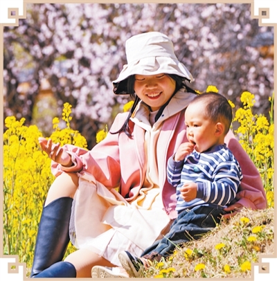A tourist enjoys a day out with her child in Nyingchi town, Bayi district of Nyingchi city, southwest China's Xizang Autonomous Region. (People's Daily/Xu Yuyao)