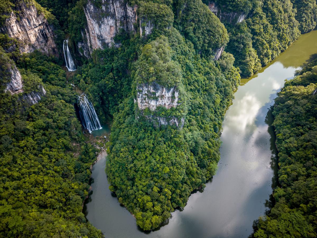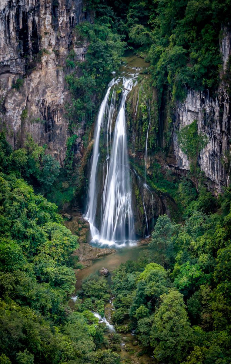 A photographer's glimpse reveals a canyon plunging more than 300 meters, its sheer cliffs carved as if by knife and axe. On the valley floor, two waterfalls steal the show.