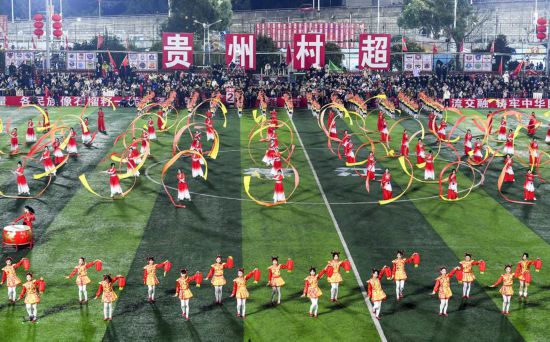 Actors perform during the opening ceremony of the "Village Super League," or "Cun Chao," in Rongjiang County, southwest China's Guizhou Province on Jan. 4, 2025. (Xinhua/Yang Wenbin)