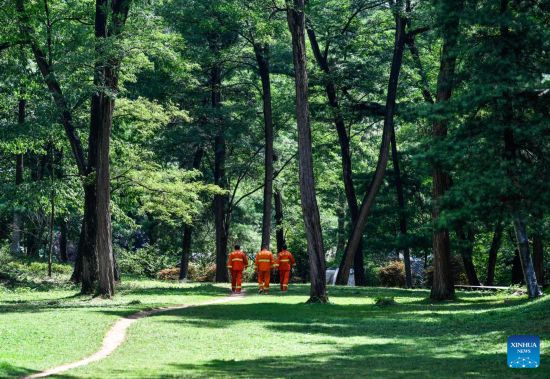 Forest rangers patrol the Changpoling Forest Farm in Guiyang, southwest China's Guizhou Province, July 1, 2025.