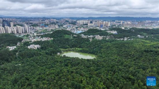 An aerial drone photo shows a panoramic view of the Changpoling Forest Farm in Guiyang, southwest China's Guizhou Province, July 1, 2025.