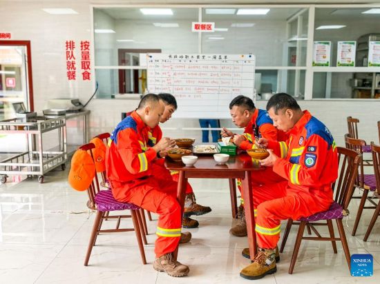 Forest rangers have lunch after patrolling the Changpoling Forest Farm in Guiyang, southwest China's Guizhou Province, July 1, 2025.