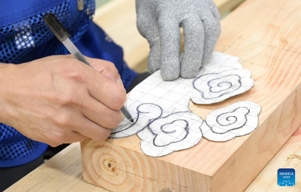 A contestant competes in woodwork relic restoration during the 2nd National Cultural Heritage Vocational Skills Competition in Luzhou City, southwest China's Sichuan Province, July 5, 2025. Starting from July 3, the four-day event attracted nearly 300 contestants competing in six categories. (Xinhua/Li He)