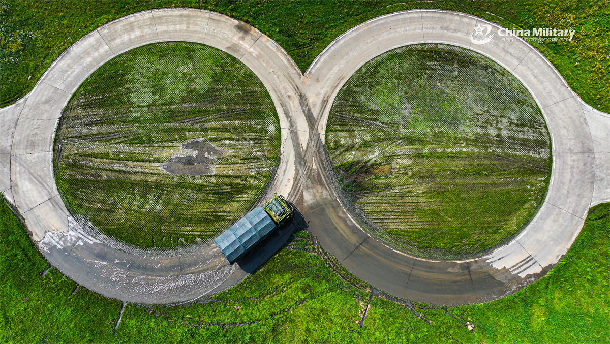Army driver assigned to the Chinese PLA 72nd Group Army performs "figure-eight" maneuver during a driving assessment on July 2, 2025. (eng.chinamil.com.cn/Photo by Huang Baochuan)