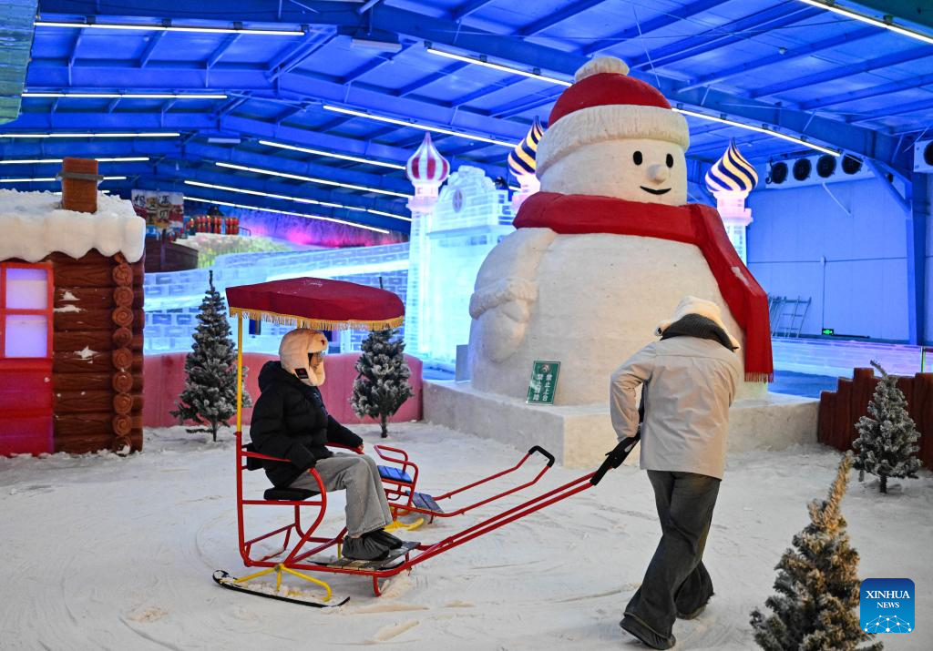 People visit indoor snow and ice world in Huaian, China's Jiangsu