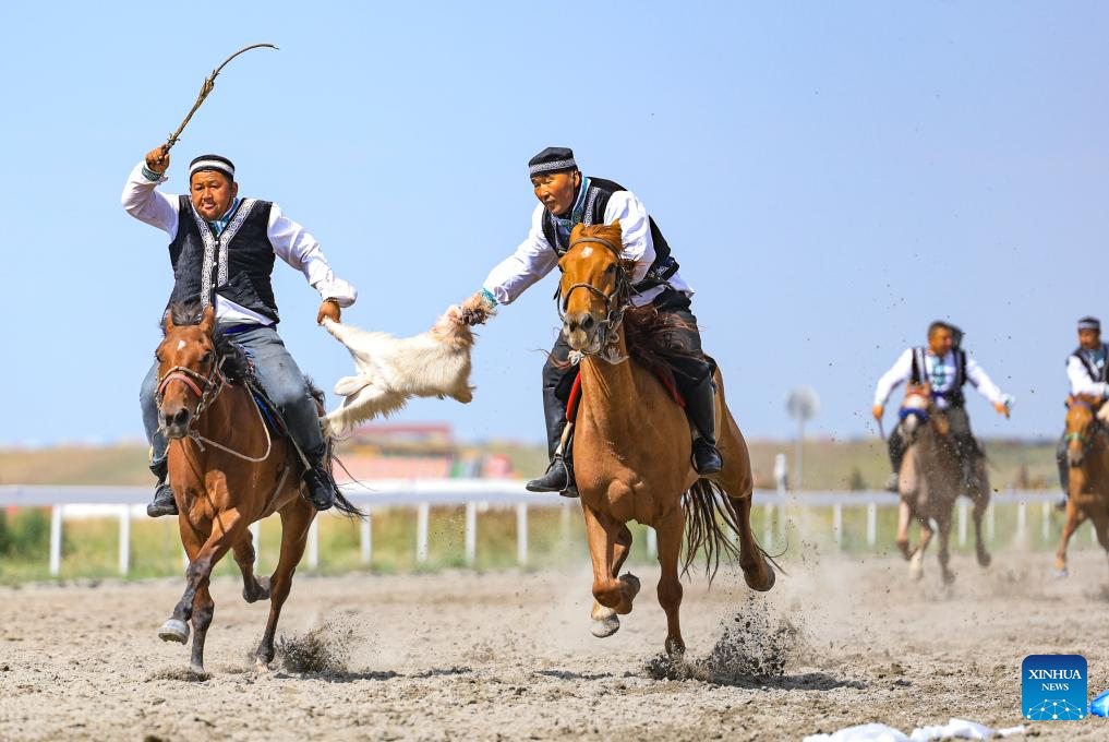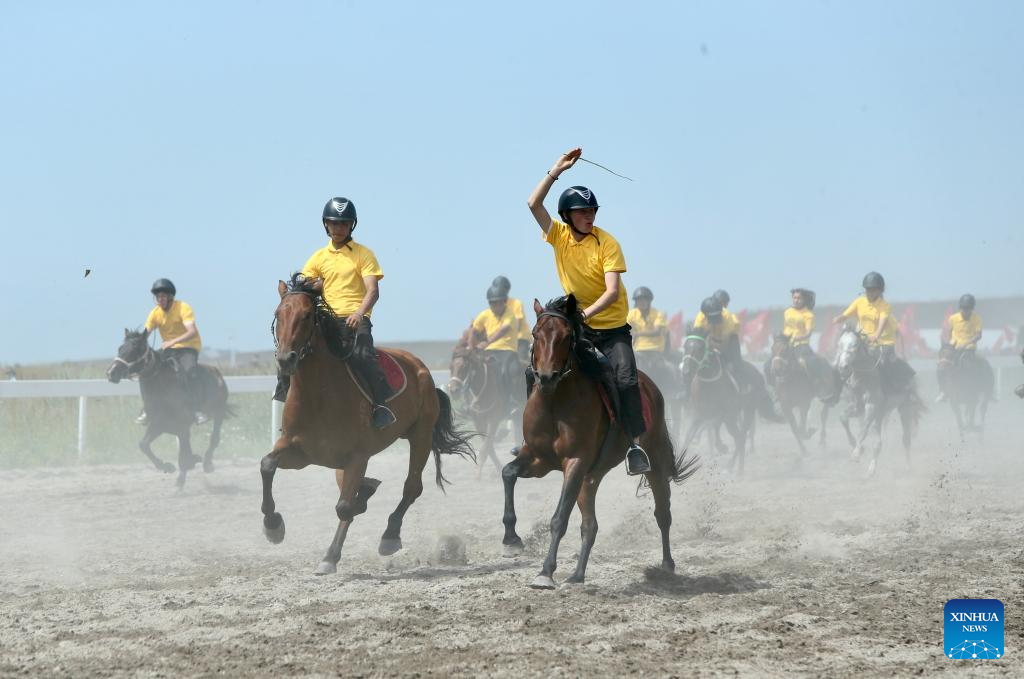 An equestrian show is staged during a tourism festival in Zhaosu, northwest China's Xinjiang Uygur Autonomous Region, July 19, 2025. (Xinhua/Wang Fei)