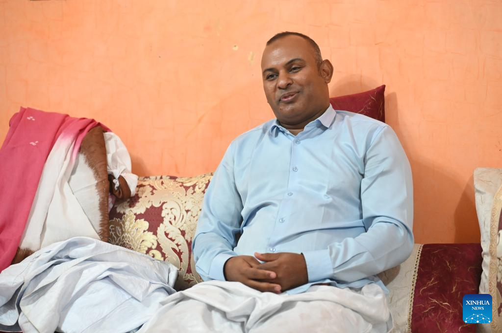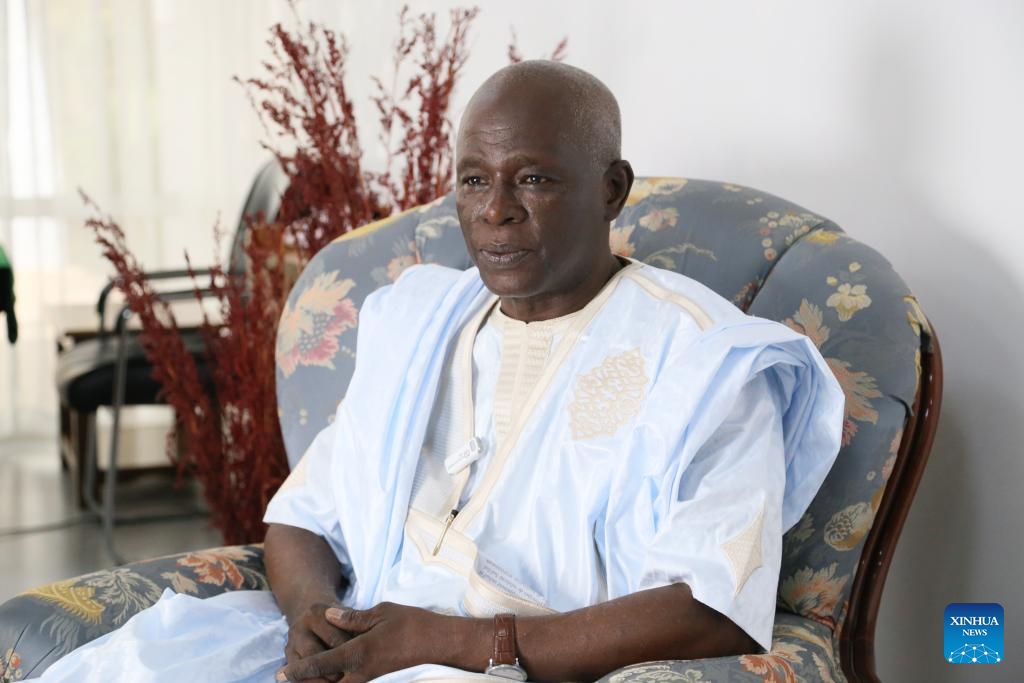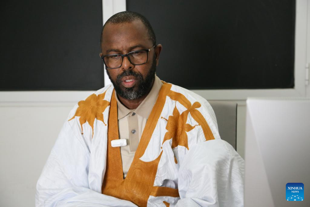 Yarbane Kharrachi, president of the Association of Mauritanian Alumni of Chinese Universities and adviser to the minister of higher education and scientific research, speaks during an interview with Xinhua in Nouakchott, Mauritania, on June 16, 2025. (Xinhua/Dai He)