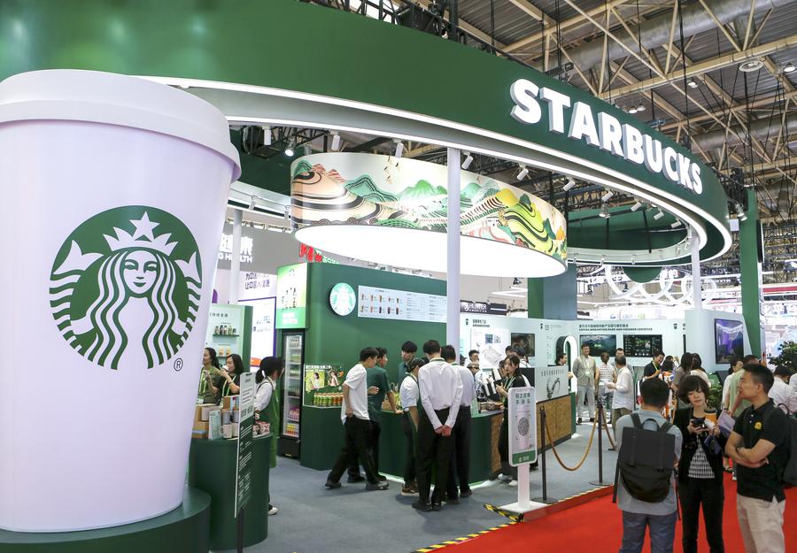 This photo taken on July 17, 2025 shows the booth of Starbucks during the third China International Supply Chain Expo (CISCE) in Beijing, capital of China. (Xinhua/Ding Hongfa)