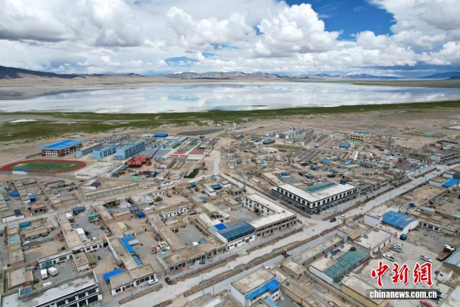 Aerial photo taken on July 20, 2025 shows Yanhu Township, Geji County, Ali Prefecture, Xizang Autonomous Region. (Photo: China News Service/Zhang Xiangyi)