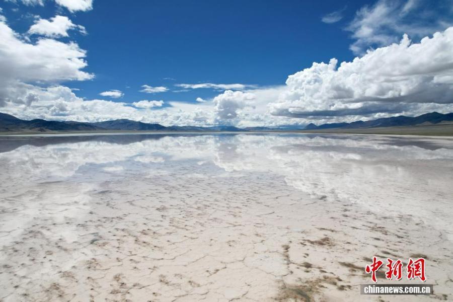 Aerial photo taken on July 20, 2025 shows a salt lake in Yanhu Township, Geji County, Ali Prefecture, Xizang Autonomous Region. (Photo: China News Service/Zhang Xiangyi)