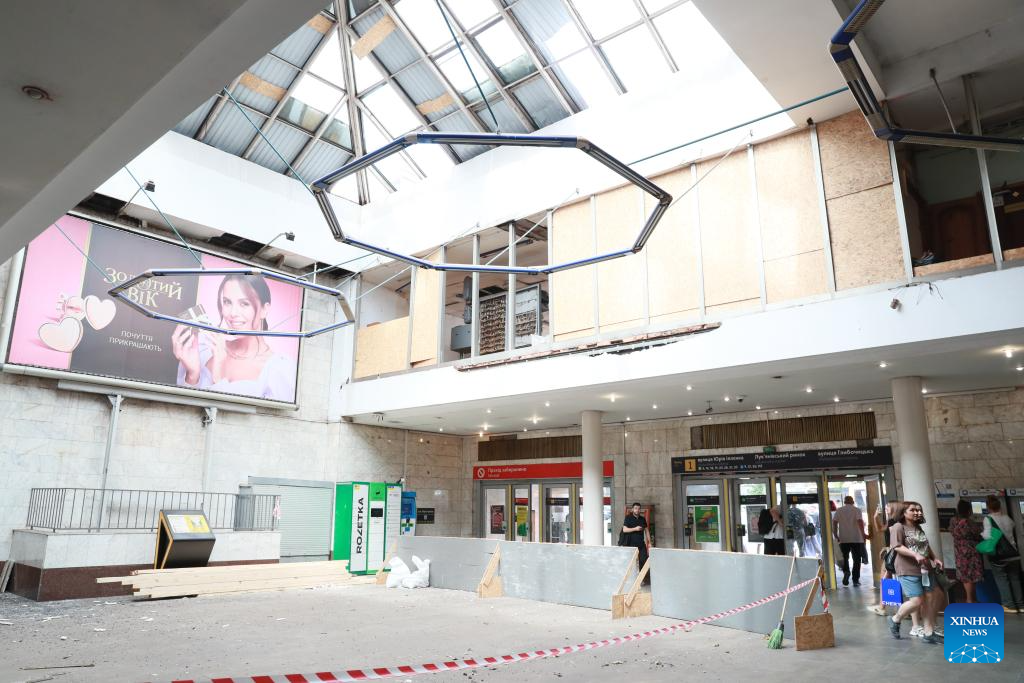 A damaged metro station is pictured after an air strike in the Shevchenkivskyi district of Kiev, Ukraine, July 21, 2025. Two people were killed and 15 others injured in a wave of Russian missile and drone strikes on Ukraine's capital and the western region of Ivano-Frankivsk early Monday, said Ukrainian authorities.