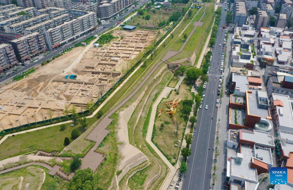 An aerial drone photo taken on July 15, 2025 shows a national archaeological park in Zhengzhou, central China's Henan Province. Located in central China, Zhengzhou is renowned as a regional hub for sci-tech innovation, a national historical and cultural city, and an international comprehensive transportation hub. In recent years, Zhengzhou has been dedicated to promoting high-quality development, enhancing its overall competitiveness, and integrating into the national market.