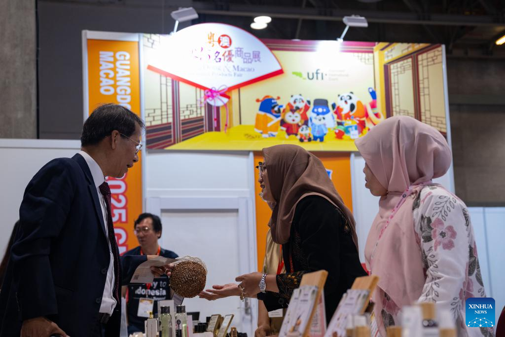 Citizens visit the 2025 Guangdong and Macao Branded Products Fair in Macao, south China, July 24, 2025. The 2025 Guangdong and Macao Branded Products Fair opened Thursday in China's Macao Special Administrative Region (SAR), highlighting "silver economy" and the "China-chic" cultural trends.(Photo by Cheong Kam Ka/Xinhua)