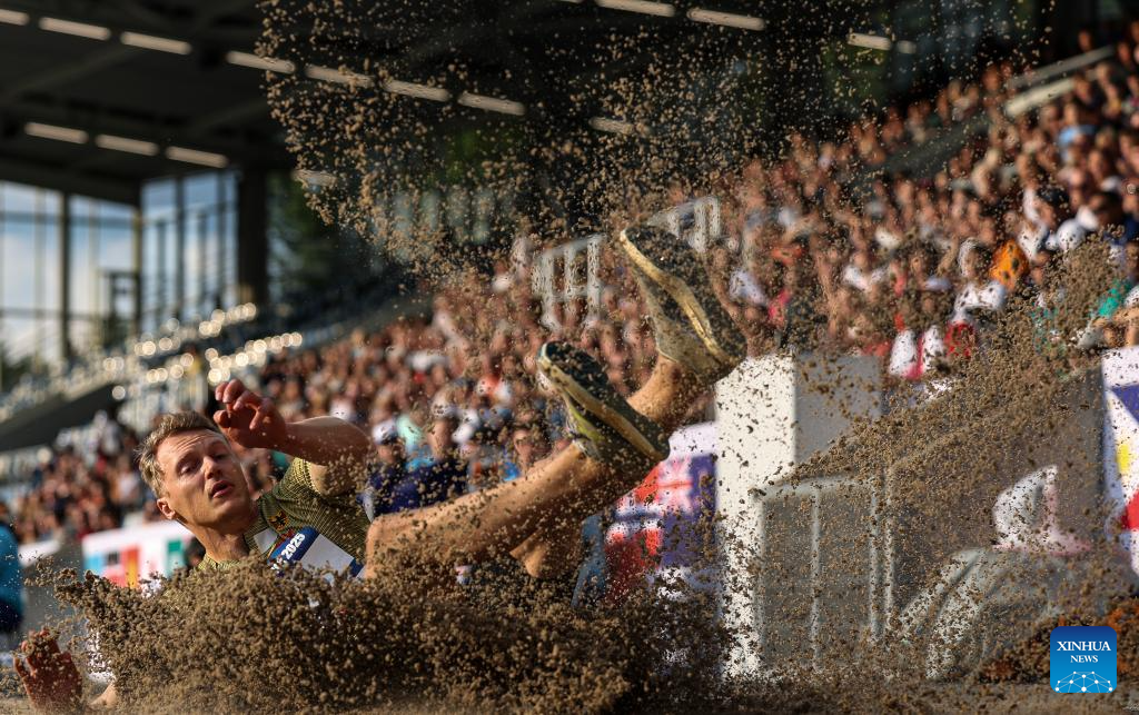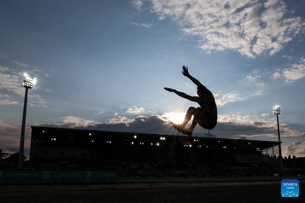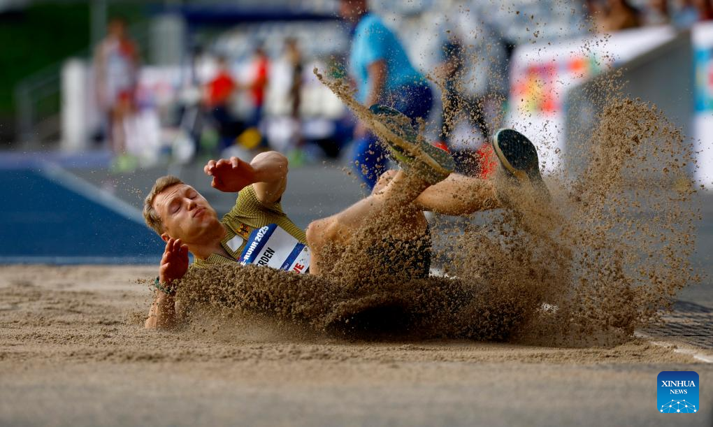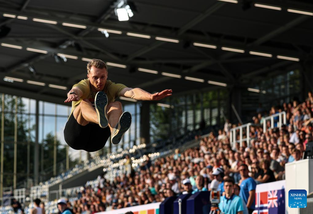 Luka Herden of Germany prepares before the men's long jump final at the Rhine-Ruhr 2025 FISU World University Games in Bochum, Germany, July 24, 2025. (Xinhua/Li Ying)