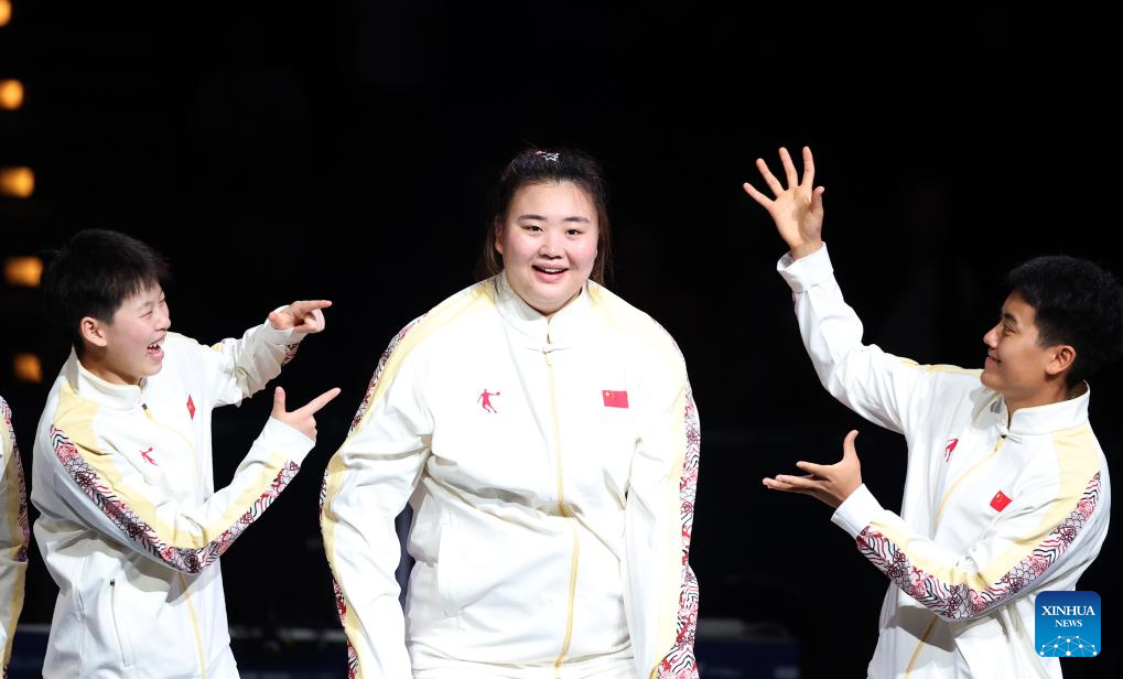 Players of China celebrate after the women's basketball final between China and the United States at the Rhine-Ruhr 2025 FISU World University Games in Essen, Germany, July 25, 2025. (Xinhua/Zhang Fan)