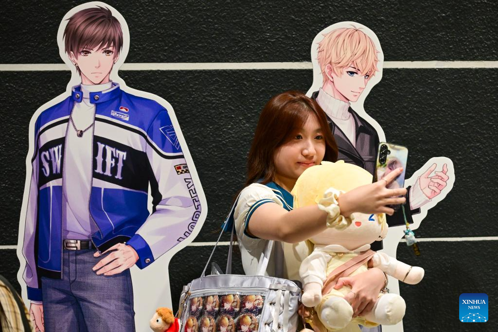 A girl takes selfies at the 26th edition of the Animation-Comic-Game Hong Kong in south China's Hong Kong, July 25, 2025. (Xinhua/Zhu Wei)