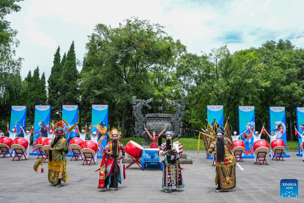 Photo taken on July 26, 2025 shows the site of the World Games 2025 Torch Relay in Chengdu, southwest China's Sichuan Province. (Xinhua/Sun Fei)