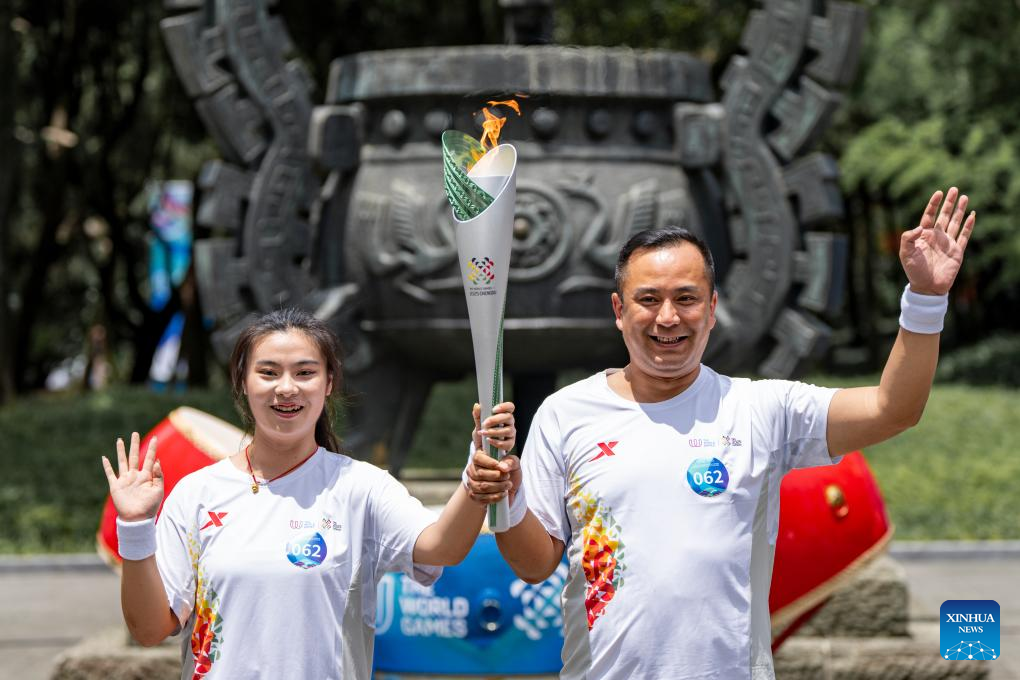 CHENGDU, July 26 (Xinhua) -- As a soft breeze drifted through the morning air, the torch relay for the World Games was held for the first time in the event's history on Saturday, launching from the iconic Sanxingdui archaeological site in southwest China's Sichuan Province and tracing a route through major landmarks of Chinese civilization.