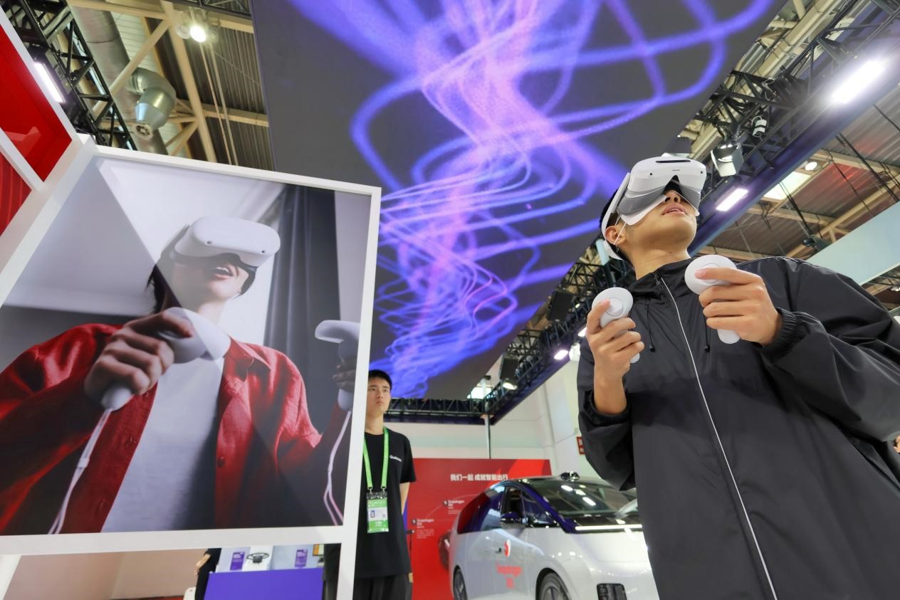 A man experiences interactive games at the exhibition booth of Qualcomm at the third China International Supply Chain Expo, Beijing, July 17, 2025. (Photo by Tang Ke/People's Daily Online)